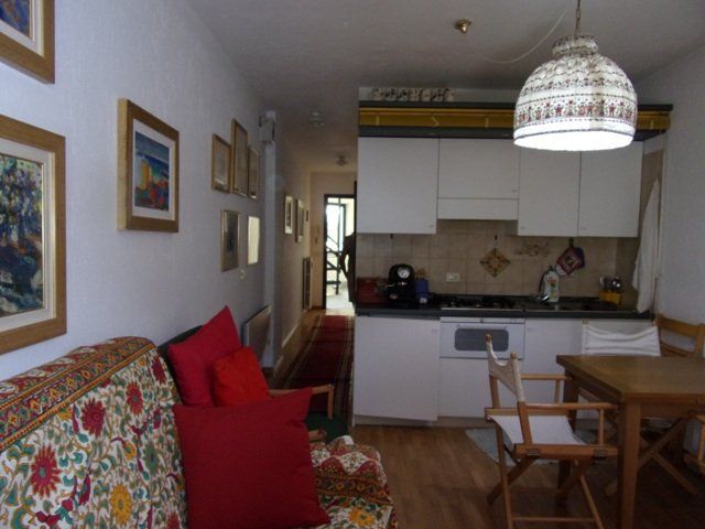 Soggiorno con angolo cottura e con divano letto matrimoniale