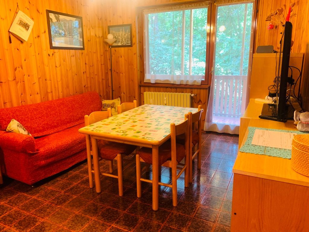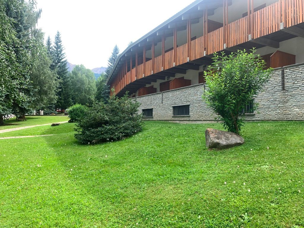 In contesto tranquillo, a due passi dagli impianti sciistici di Campo Smith e di Les Arnauds,con di fronte la fermata delle navette gratuite che portano ai comprensori sciistici limitrofi, nella residenza “Fiori Alpini” in condominio circondato dal un bel parco, al piano rialzato, affittasi da dicembre a metà febbraio trilocale di mq 60 catastali composto da: