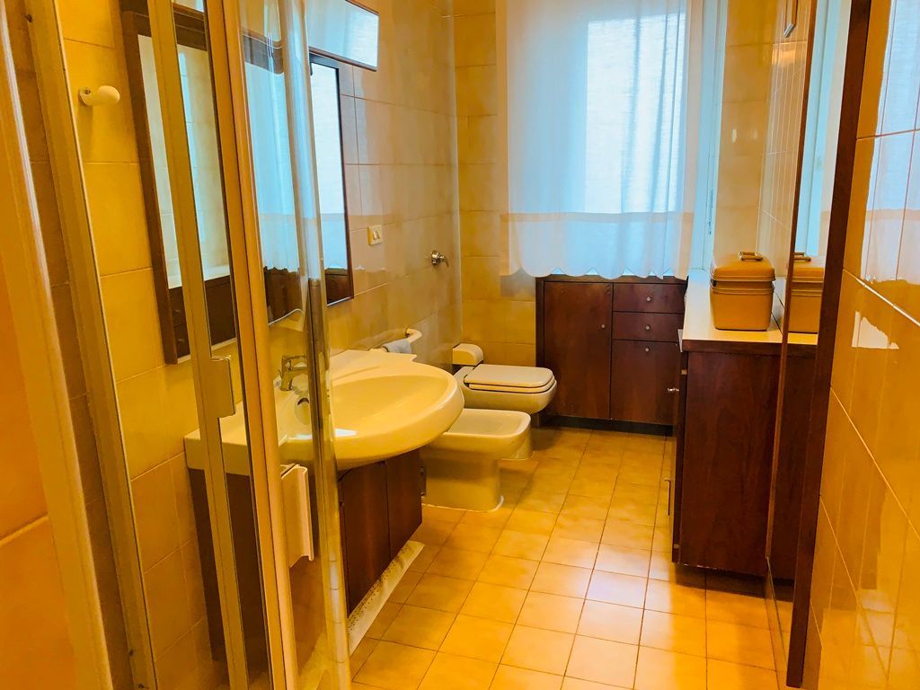 La proprietà gode di una doppia esposizione con vista montagne lato salotto, sala da pranzo e camera matrimoniale, mentre interno cortile l’altro lato